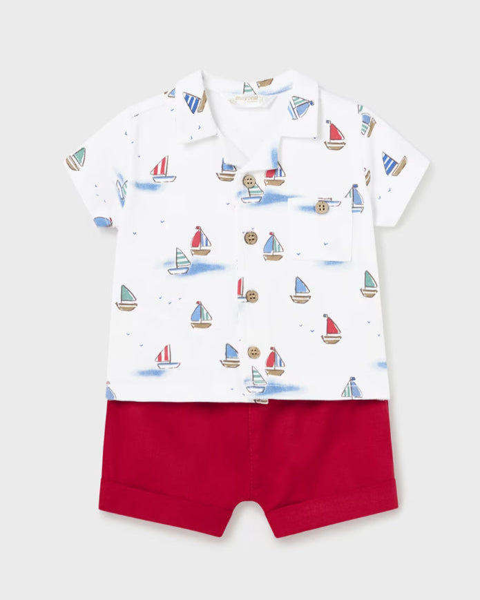 Conjunto niño 2 piezas, compuesto por una camiseta estampado barcos y short