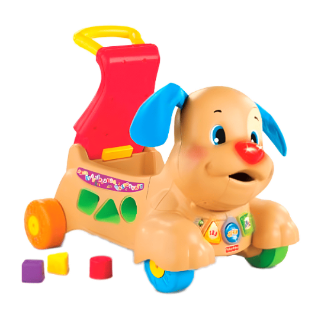 Perrito Camina Conmigo es una andadera y montable con muchas actividades. La cabeza y orejas se mueven al avanzar, la boca se abre y cierra para que el bebé pueda “alimentar” a Perrito.