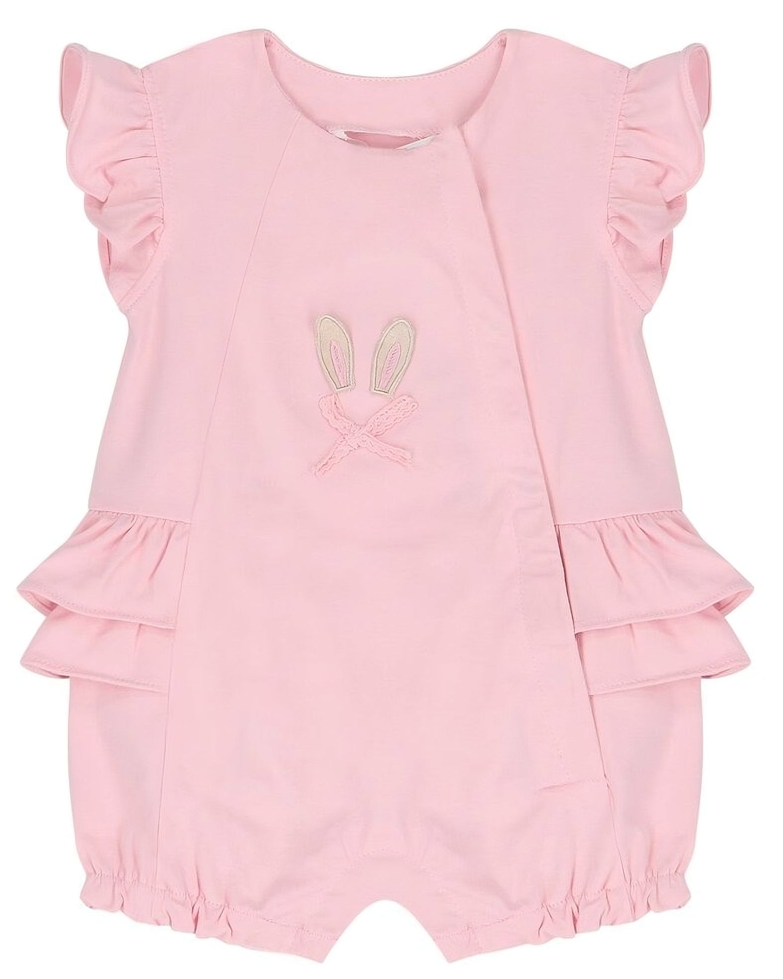 Mameluco manga corta, cierre lateral con botones a presión. Cierre con botones en la entrepierna.