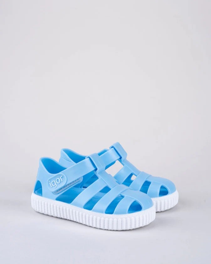 Sandalias en material translucido brillante, con estilo sport perfectas para la playa, la piscina o su día a día. Muy cómodas, flexibles y blanditas.