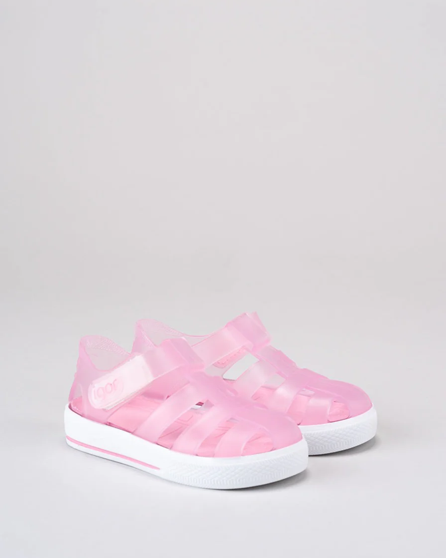 Sandalias en material translucido mate, con estilo sport perfectas para la playa, la piscina o su día a día. Muy cómodas, flexibles y blanditas.