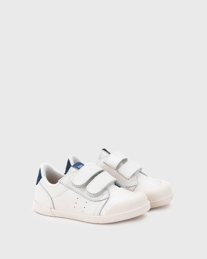 Deportivos de piel casual de concepto barefoot, cero drop, flexible y blandito, plantilla extraíble y cierre adherente para mayor ajuste y autonomía.