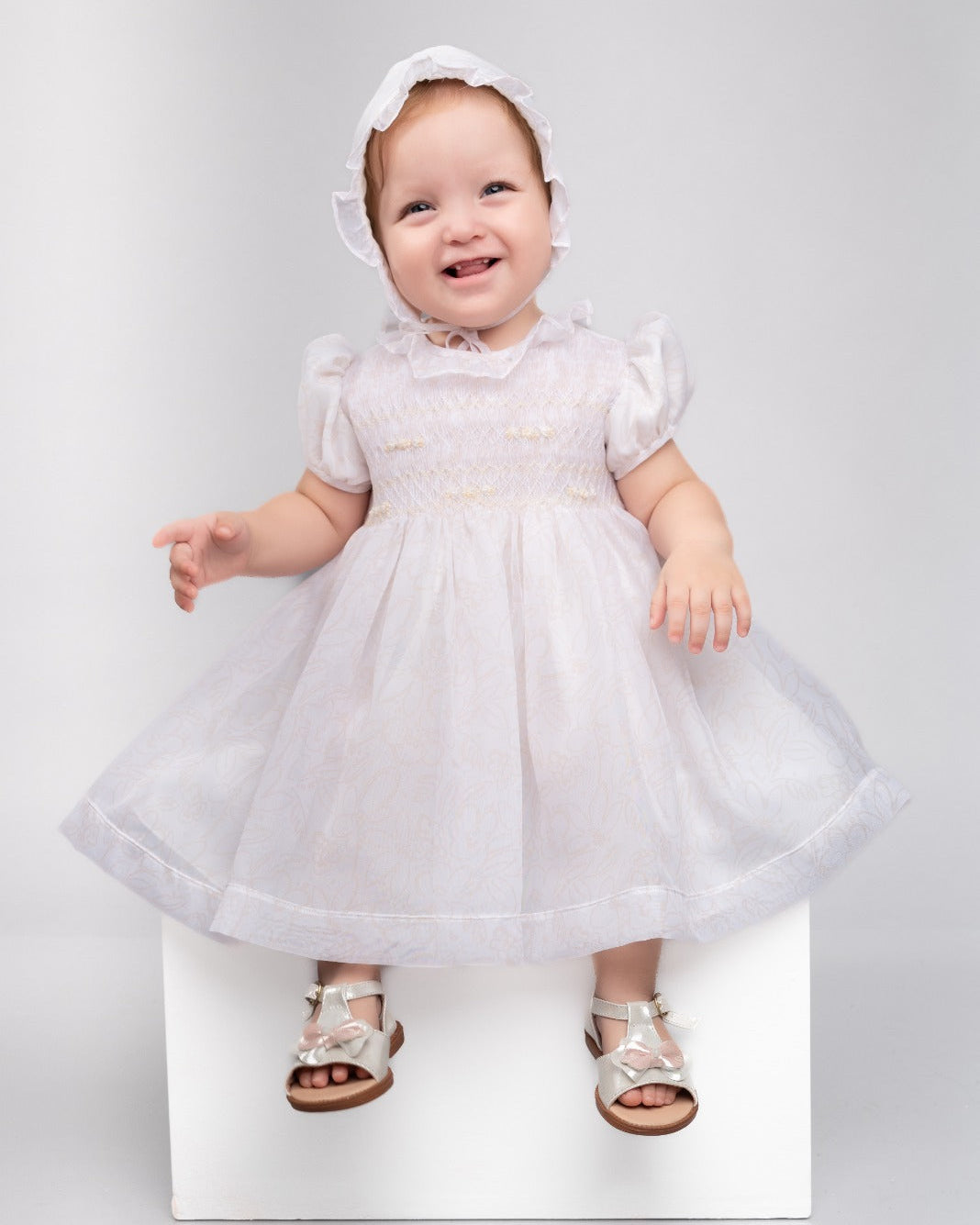 Vestido Velo Grabado Flores Pechera Colmena
